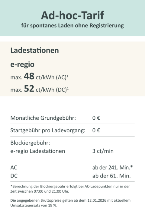Neue Tarife ab dem 12.01.2026 für Öffentliche Ladeinfrastruktur