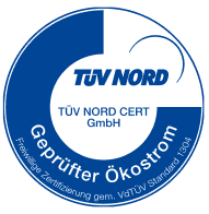 Der TÜV NORD zertifiziert unseren Ökostrom nach strengen Kriterien: Herkunft aus erneuerbaren Energien, transparente Nachweise und tatsächlicher Beitrag zur Energiewende.
